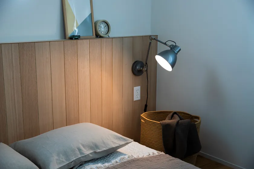 ヘッドボードのちょっとしたスペースで寝室の使い方が広がります