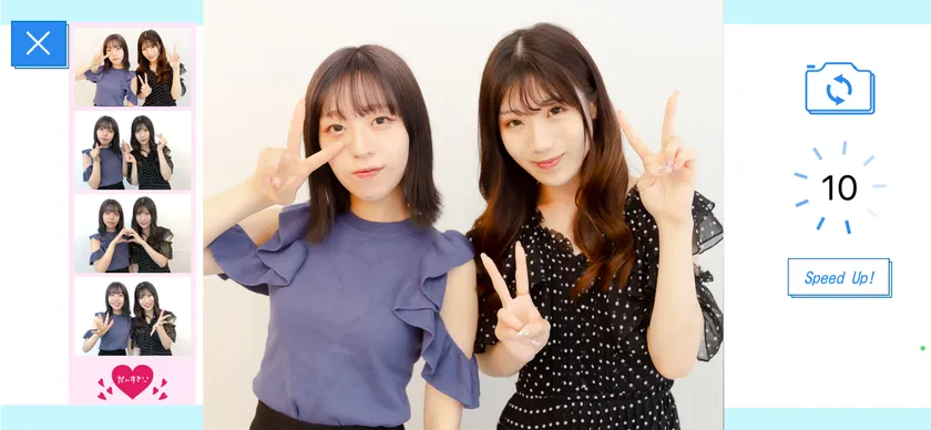 「2人でハート」「変顔して」など20種類のポーズがランダムで指示されるモードもあり、恋人や友達とワイワイ楽しみながら撮影ができます。