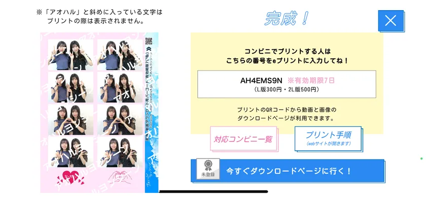 コンビニでプリントすると付いてくる二次元バーコードから、撮影した写真や、撮影風景の動画がダウンロードできます。