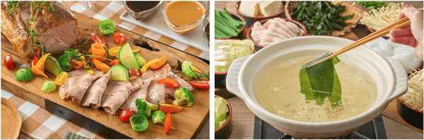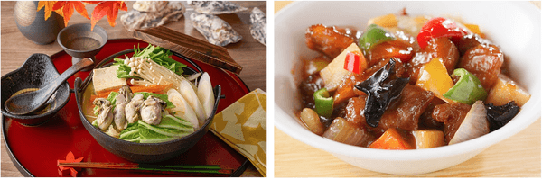 左:秋の訪れと共に恋しくなる鍋料理。宮城県産の牡蠣を使った小鍋をテーブルで煮込んでお楽しみください。