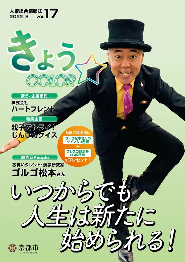 ゴルゴ松本さん「『命』の授業」のインタビューを掲載 “いつからでも人生は新たに始められる!”再犯防止をテーマに 京都市人権総合情報誌「きょう☆COLOR vol.17」を発行