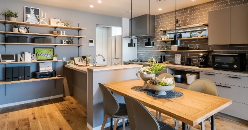 家族みんなで料理をしても広々と使えるオープンなキッチン。子どもが自然に食事の準備や後片付けに参加しやすくなるだけでなく、会話も育みます。