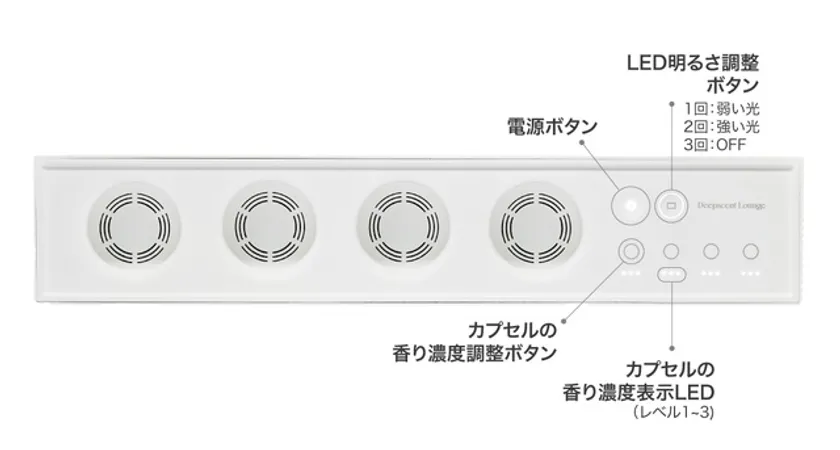 Lounge(ラウンジ)はアプリ操作できない場合でも、本体のボタンで電源のON/OFFはもちろんのこと、香りの濃度を設定できます。