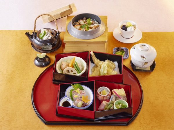 色とりどりの口取りとお造りや煮物に加え、〆には素材の旨味を凝縮した釜めしと土瓶蒸しをご用意。四季を映す盛り込みで、日本の秋を堪能いただける御膳です。