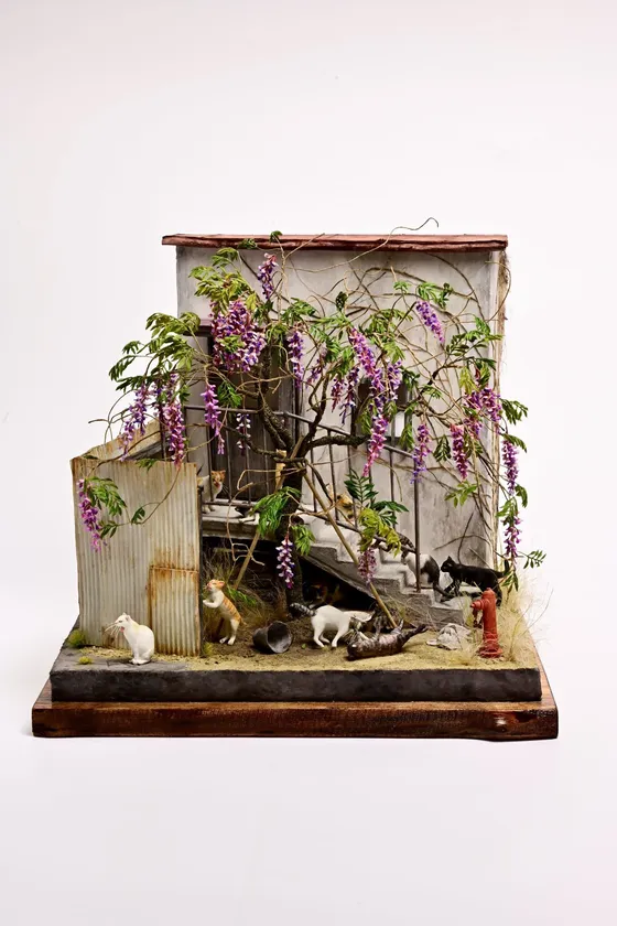 ありきたりな日常が猫たちにとっては心地よい穏やかな日々である、という想いを込めた個展になります。粘土ほか様々な材料で作り上げられるりゅうざぶの作品ですが、11月の個展では、現在制作中のりゅうざぶの最新作含めた「懐かしい昭和の風景の中で逞しく生きる猫たち」「美しい箱庭の世界」を楽しむことができます。