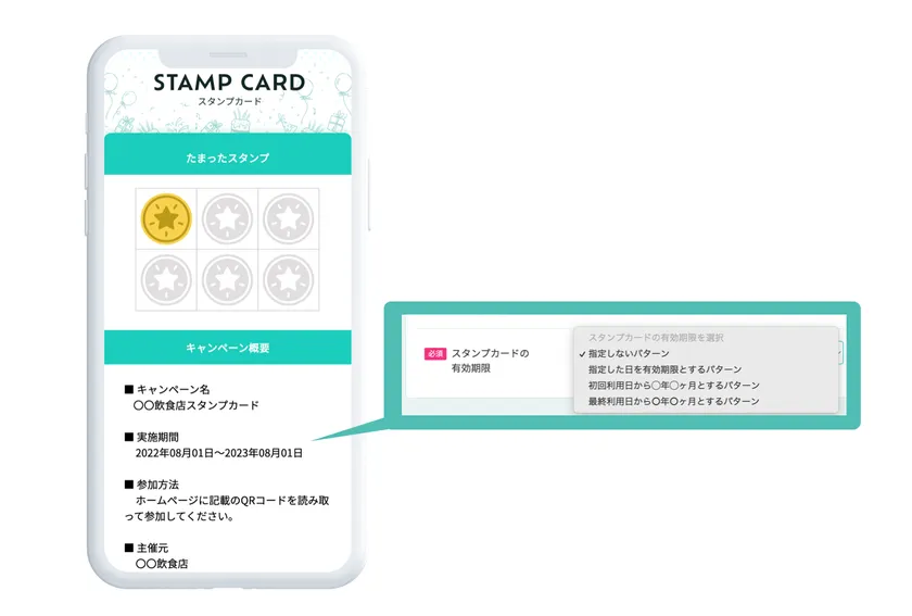 スタンプカード内では、有効期限の設定が可能となっています。