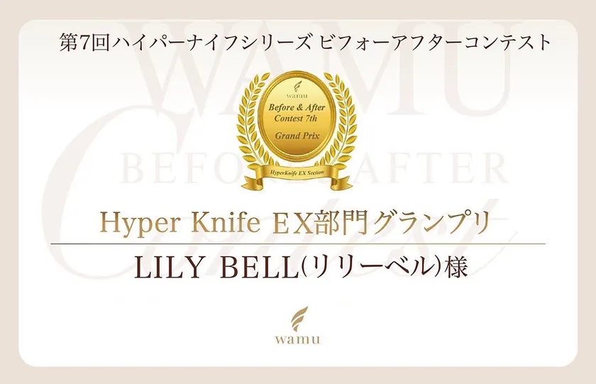 ハイパーナイフのメーカーである株式会社ワムが主催する第7回ビフォーアフターコンテスト(2022)にて総合グランプリを受賞した当店LILY BELL(リリーベル)の実績と知識・技術を元にお客様のお身体に最も合ったお手入れメニューをご提案いたします。お客様は「なりたい自分の姿」と「目標期日」をスタッフと共有するだけでOK♪理想のお身体へと導きます!