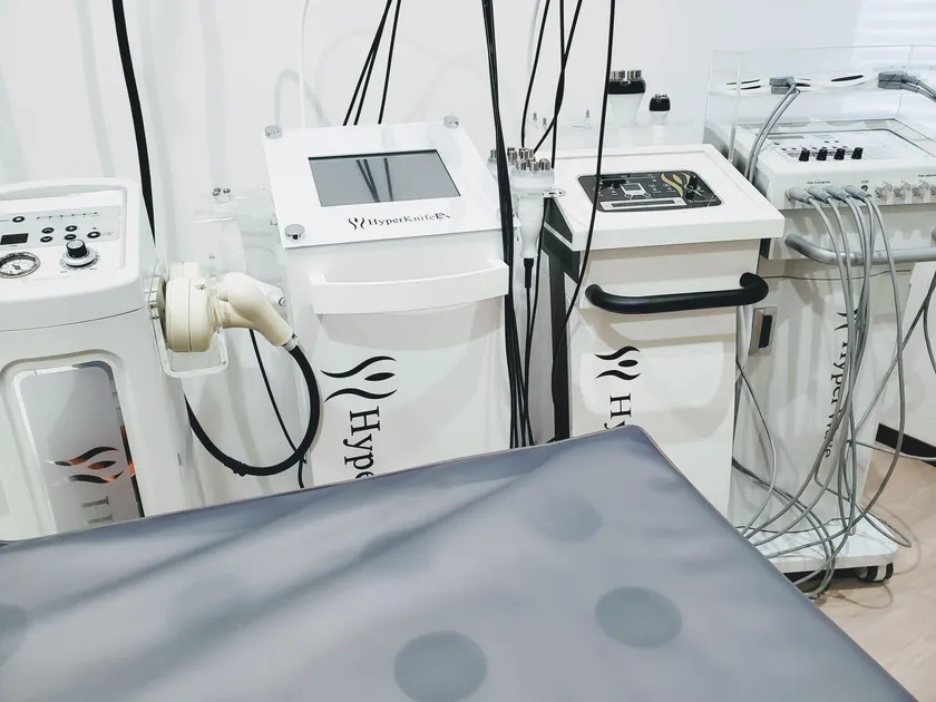 当店LILY BELL(リリーベル)は、大人気痩身機器であるハイパーナイフをはじめとする【ハイパーシリーズ全5機種】をすべて導入しているフルコンプリートサロン。メーカーからお声がかからないと導入できない最新最上位機種「ハイパーナイフEX」の導入店です。