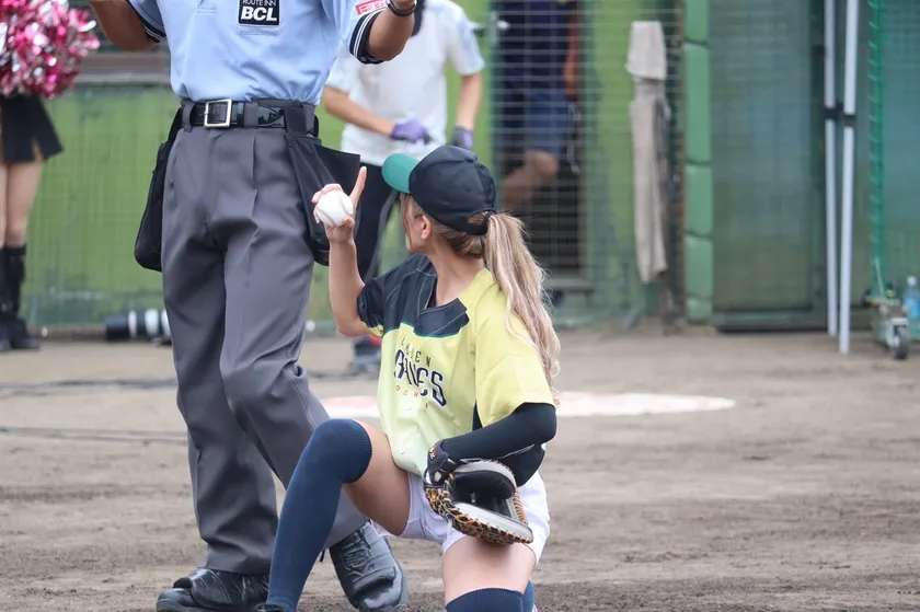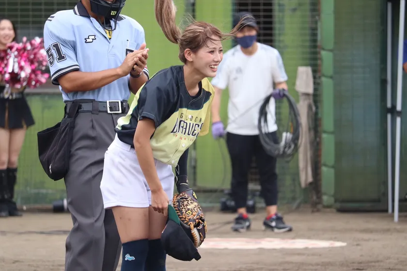 ギャル系野球女子YouTuber「めいちゅん」が 始球式ならぬ“補球式”に登場!