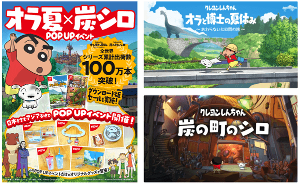 クレヨンしんちゃん人気ゲームシリーズ【クレヨンしんちゃん『オラと博士の夏休み』〜おわらない七日間の旅〜】【クレヨンしんちゃん『炭の町のシロ』】全世界累計出荷数が100万本を突破!