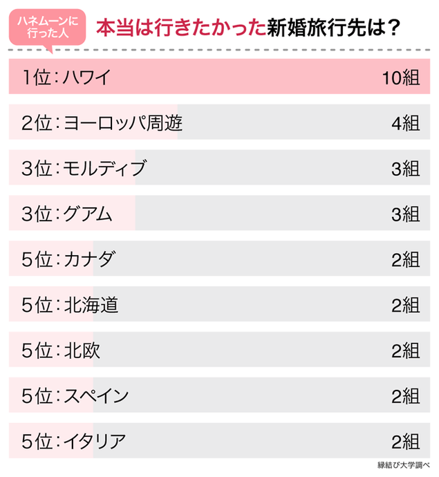 本当に行きたかった新婚旅行の行き先は「ハワイ」が最多