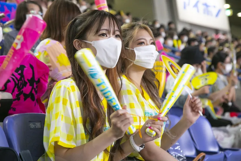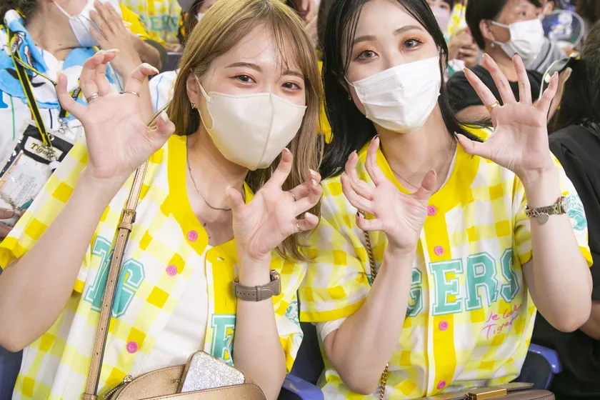 真夏の京セラドーム大阪に、全国から女性タイガースファンが大集結。イエローのギンガムチェックで華やかに。