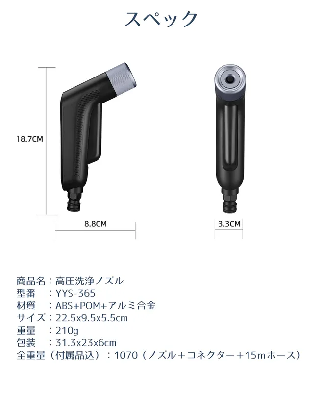 (詳細:ノズル×1、3倍伸縮加圧ホース(5m)×1、多機能コネクター×1、