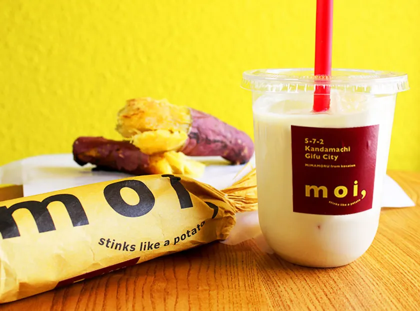 moi,は2021年3月31日に岐阜県岐阜市神田町5丁目にオープン、「つぼやきいも」をはじめとして、ソフトクリームにつぼやきいものペースをトッピングした「moi,ソフト」や“飲むスイートポテト”の「moi,ラテ」などのオリジナルスイーツが人気の店舗です。このたび名古屋最大の商店街である大須商店街の観音通りに名古屋1号店を初出店する運びとなりました。