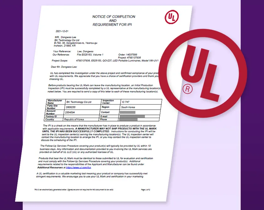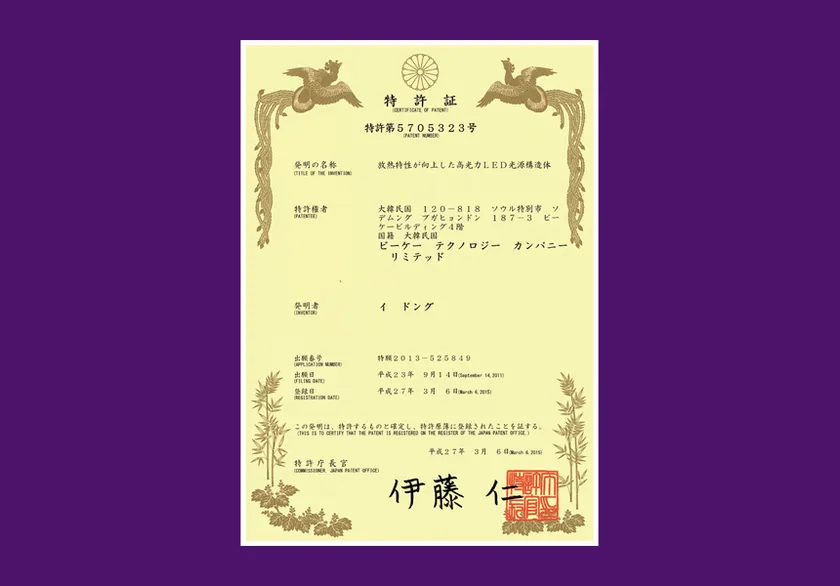 「Vitamin LEDスタンド」は、メーカーが独自開発した特許システムに加え、認証取得の難しいアメリカUL認証をたったの3週間で習得した安全性が認められた除菌器として、他国・他社で複製品の製造ができないようにハーグ協定国際特許出願及び日本と中国でもデザイン特許を取得しております。