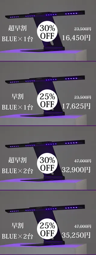 ・Vitamin LEDスタンドブルー1台+ホワイト1台 49,000円→36,750円(税、送料込み)