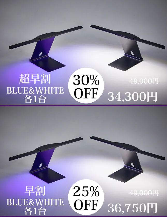 ・Vitamin LEDスタンドブルー1台+ホワイト1台 49,000円→34,300円(税、送料込み)
