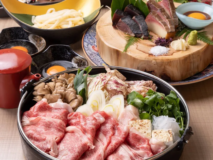 ■和牛リブロースのすき焼き×鰹と鰤の藁焼き【竹コース】2時間飲み放題付 5,000円(税込)