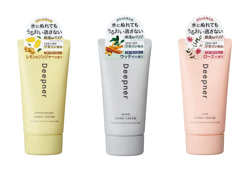 バリア効果で水にぬれてもうるおい逃さないハンドクリーム 「近江兄弟社メンターム ディープナーハンド」3種が9月1日発売