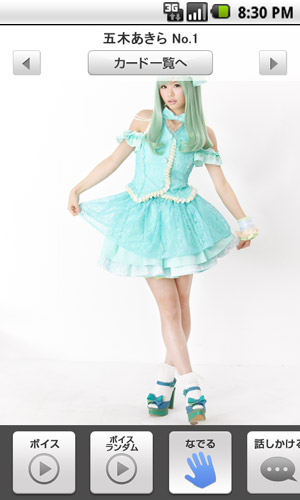 「嫁コレアイドル」は、アイドルのカードをコレクションして楽しむアプリで、とり下ろしの画像やボイスを収録しています。カードを表示した画面上で、“なでる”“キスする”“プレゼント”“起こしてもらう(目覚まし)”などの操作をすることで、アイドルの“愛情度”が向上し、“愛情度”に応じて、ボイスの数や「嫁」として選べるアイドルの上限数が増えていきます。本アプリのダウンロードと、一部のカードは無料で、さらに有料でカードを購入することも可能です。