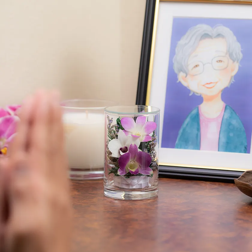 株式会社アプラス(本社:石川県加賀市、代表取締役社長:坂本 博胤)は、2022年8月1日より特殊な技術で乾燥させたドライフラワーを、透明度の高いガラスの中にアレンジした「グラスフラワー お供え花」の新デザインアレンジの販売をスタートいたしました。