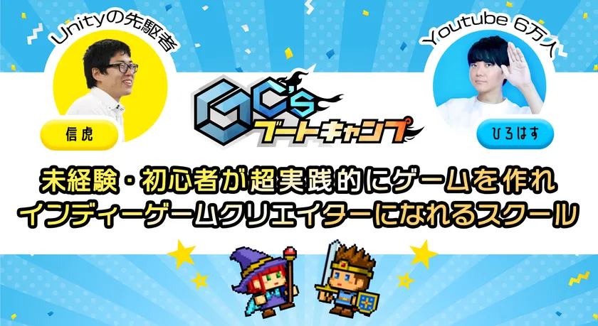 ゲーム系YouTuber、登録者数6万人のひろはすと、Unityの先駆者である信虎が、「誰もが自由にゲームを創造することの出来る世界を実現する」をビジョンに共同設立したスクール『GC'sブートキャンプ』を記念して、2022年9月4日(日)に「超実践型ゲーム制作体験ワークショップ」を開催いたします。