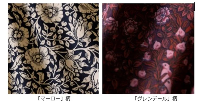 第一弾として発売したのは、V&Aが収蔵するふたつのアーツ&クラフツのデザイン:幅広く合わせやすい洗練されたモノクロクロームの華やかな花柄「マーロー(Mallow)」と同じく素敵な色合いで再現された「グレンデール(Glendal)」です。