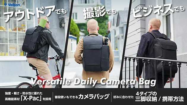 三脚のVelbon(ベルボン)が本気で作ったカメラバッグ「Velbon Versatile Daily Camera Bag」の先行予約販売を「Makuake」上で開始!