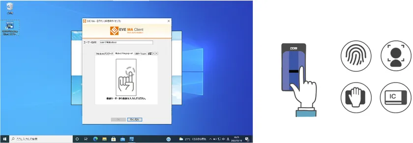 「EVE MA(イヴ エムエー)」は、各種システムに対するパスワードでの本人認証を生体(指紋、顔、静脈)、ICカード(FeliCa、MIFARE、マイナンバーカード)、パスワードを用いた多要素認証方式に置き換える認証基盤です。Active Directoryとのシームレスな連携で組織・グループに対する柔軟な設定を可能とし、エンタープライズシステムの認証基盤における自在な設定を可能にします。