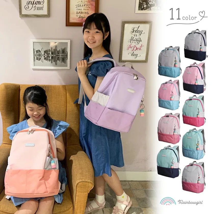 シンプルだけど個性的なデザインに、バイカラーの配色が可愛くてオシャレと好評の、小学生向けのキッズリュックです。