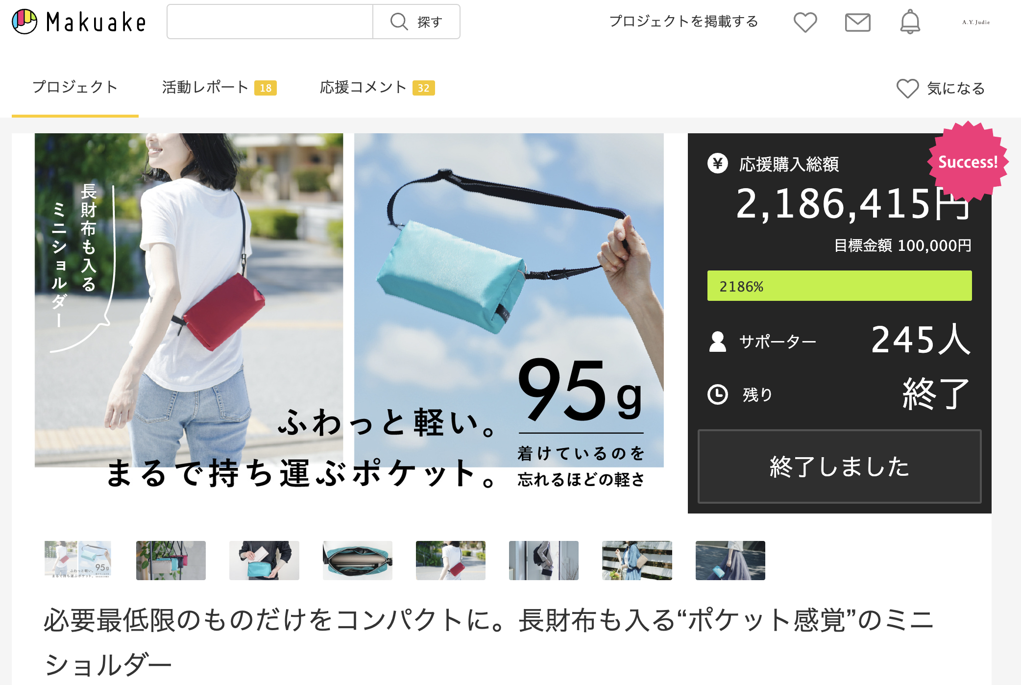 株式会社A.Y.Judie(エイワイジュディ、本社:長野県小諸市、代表取締役社長:土屋 香南子、URL: https://ayjudie.com/ )は、応援購入サイトMakuakeで2022年7月2日から7月30日まで実施したプロジェクトにおいて、目標金額の2186%を達成した「長財布も入る“ポケット感覚”のミニショルダー」の一般販売を開始いたしました。