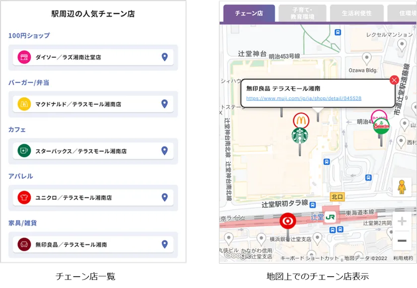 一人ひとりのライフスタイルや価値観に合った “本当に住みやすい街”を提案するWebサービス「TownU」に 「チェーン店検索」を追加