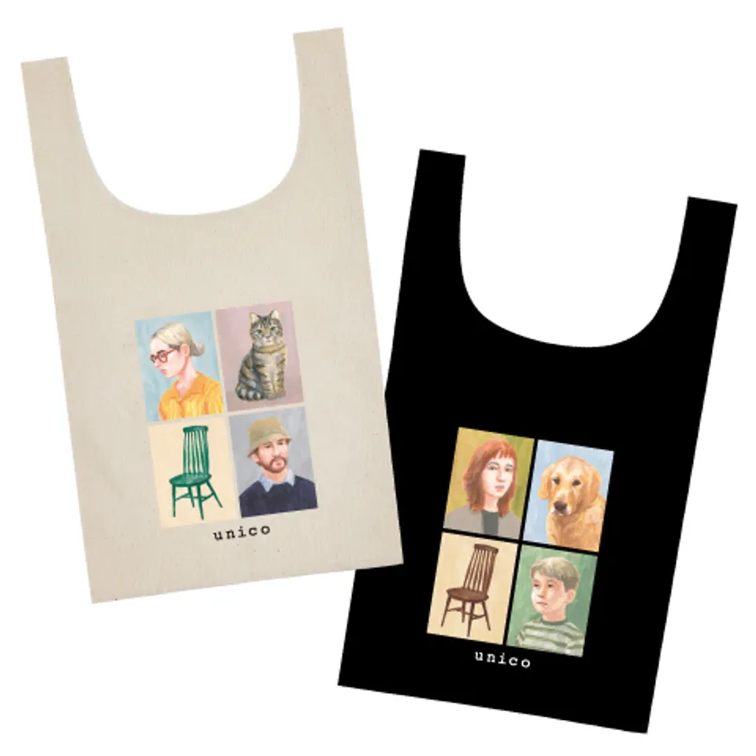 2022年のunico家具カタログのイラストも手掛けた、MASAKI TAKAHASHIのイラストをプリントしたオリジナルのマルシェバッグをご用意。