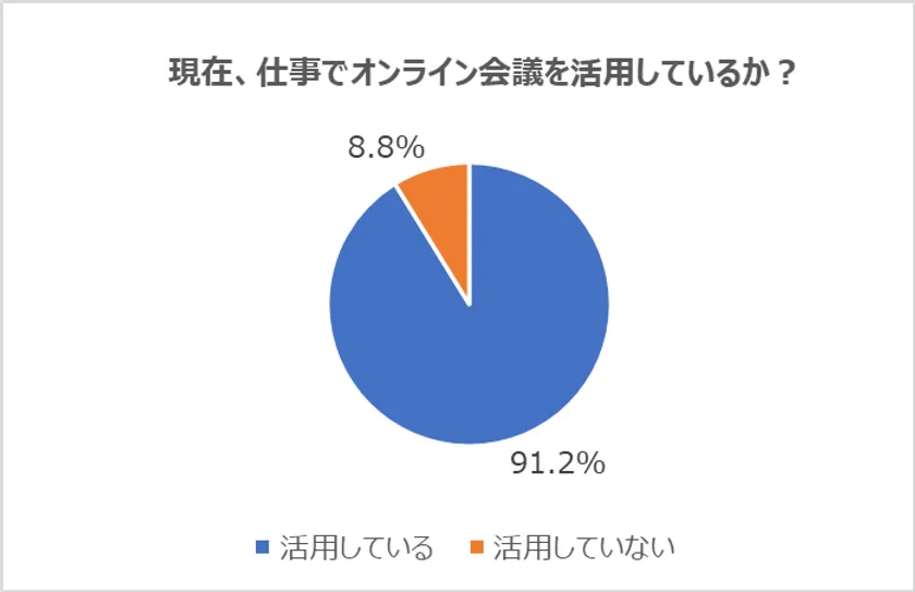2. 現在、仕事でオンライン会議を活用している人が91.2%