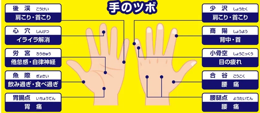 以下の参考図を保存版にして、手のつぼを刺激してください。