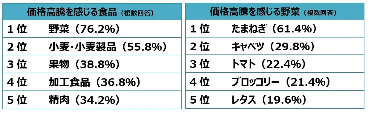 3.価格高騰を感じる食品1位「野菜」、野菜の中での1位は「たまねぎ」
