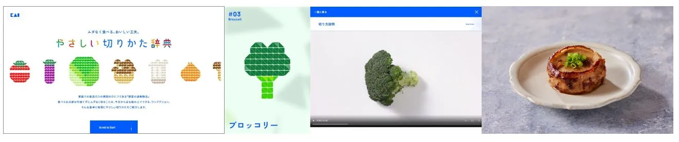 この調査結果を踏まえ、「人にやさしい刃物」という考え方を100年以上大切にしてきた貝印は、過剰除去の問題に着目し、2022年8月31日(水)「野菜の日」より、Webサイト「やさしい切りかた辞典TM」を開設します。食品ロスの中でも食材を“食べられる部分までムダに切りすぎてしまう”過剰除去問題に対して「切り方」を起点にこの問題に取り組みます。サイト内では、地球にも食卓にもやさしい、動画による野菜をムダなく切る方法やオリジナルレシピ、野菜の保存の方法などについて紹介します。