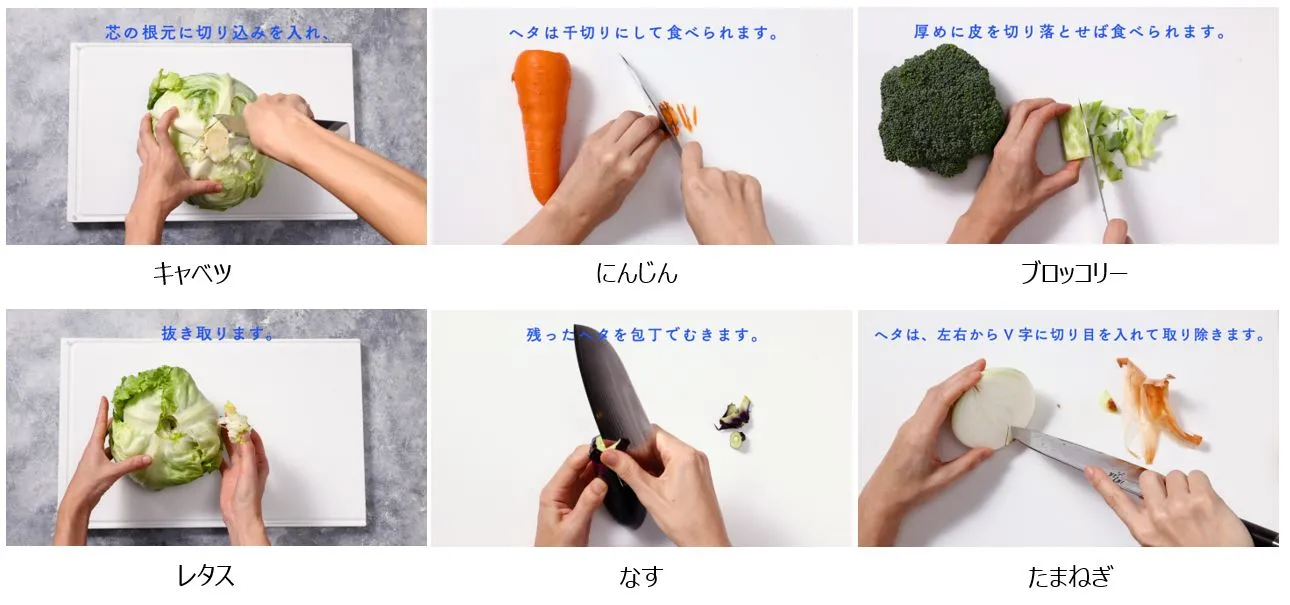 食材の切りすぎによる食品ロス(過剰除去)は、年間32.8万トンも! 8割超が食品ロスに関心があるも、過剰除去への意識は2割以下。 その野菜、切りすぎてるかも?野菜のムダのない切り方やレシピを伝授!「やさしい切りかた辞典TM」刃物メーカー貝印が8月31日(野菜の日)に公開