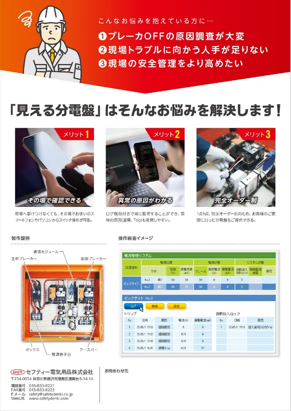 現場の電気を管理する仮設分電盤は、何かトラブルがあると担当の電気工事会社さまへ連絡が届き、現場に急行するという事象が多く発生しており、人手不足や週休二日制の導入など、今よりももっと作業効率を上げなければいけない現場において、解消したいお悩みことだというお声を頂いておりました。