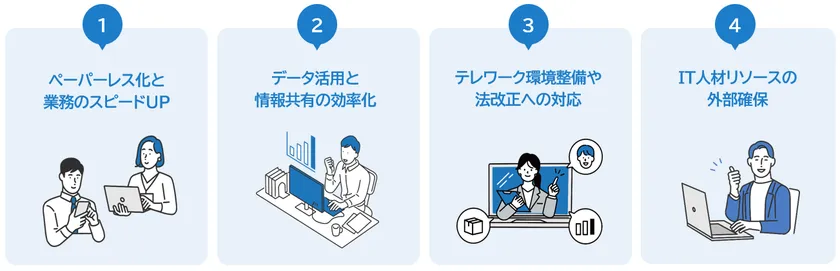 昨今、働き方改革や電子帳簿保存法・インボイス制度の法改正など、社会全体で業務デジタル化やDXが求められています。一方で、多くの企業では、効果的なクラウド活用方法やIT人材不足など、業務のデジタルシフトを進める上で、様々な課題や悩みを抱えています。