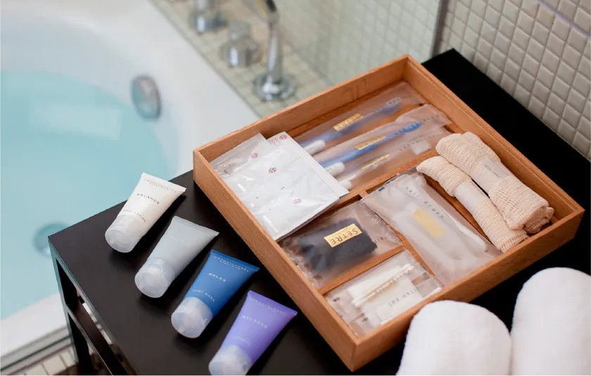 ホテルでの採用例も少なく、環境にも人にも優しいバスアメニティをお楽しみください。