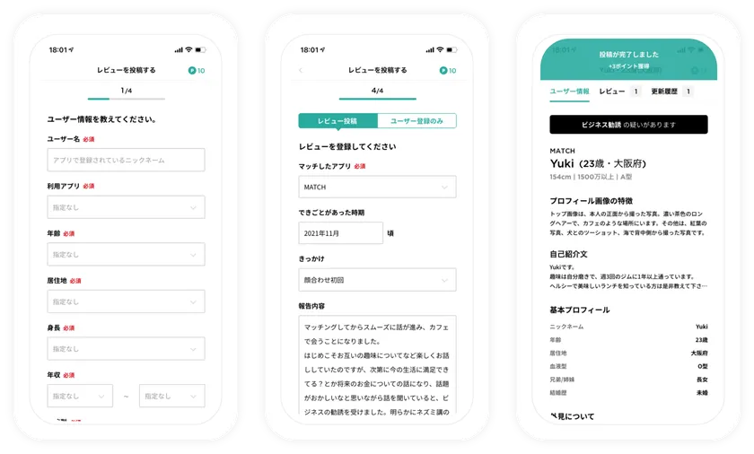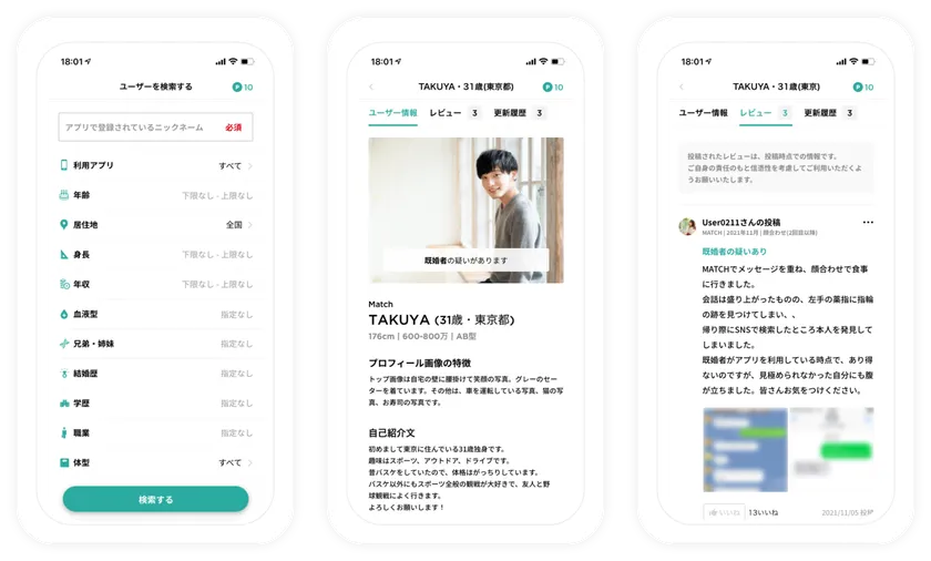 RAYOUTでは2022年9月1日(木)より、iOSアプリの正式版をリリースいたしました。アプリをご利用いただくことで、マッチングアプリを利用するユーザーの中で、「体目的の既婚者」や「投資勧誘目的」などの利用規約に違反する悪質なユーザーを検索・共有することができます。