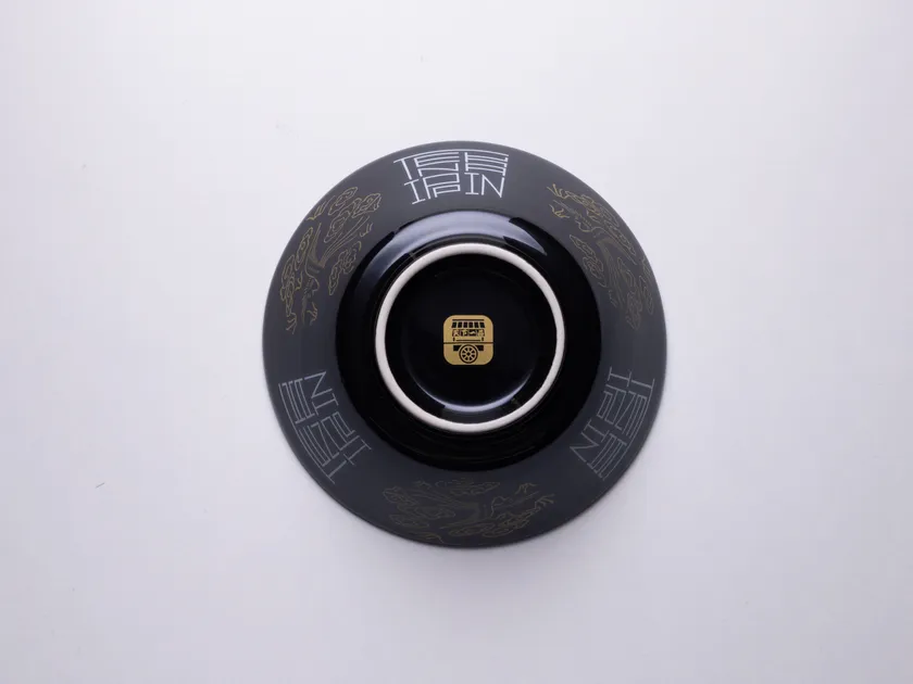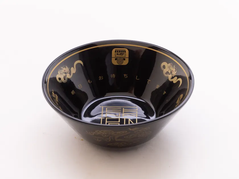 2022年巷を賑わせた「超こってり」に使用されたどんぶりが、ミニミニサイズとして賞品に。どんぶり内側の黄金に輝く一筆龍は、京都・桜凛堂の一筆龍絵師・手島啓輔氏が天下一品のために描いたもの。