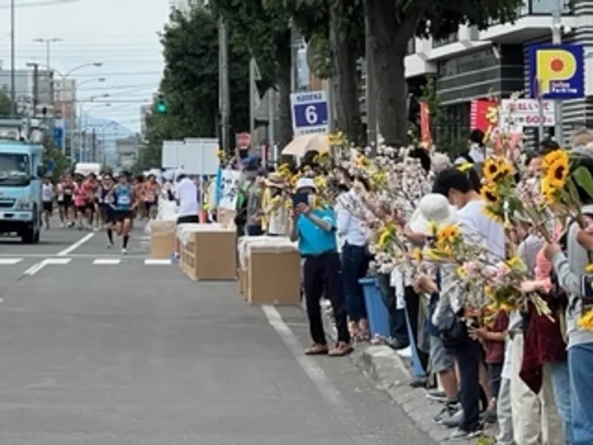 満開の雪氷桜とヒマワリでランナーを応援 「北海道マラソン2022」にて市民応援を実施