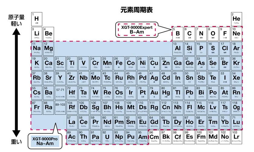 圧倒的な分析速度を実現した「XGT-9000Pro」、軽元素であるホウ素(B)からの分析を可能とした「XGT-9000Expert」の2機種を展開します。