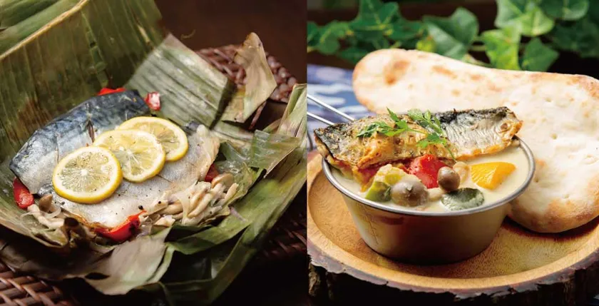 「サバーキュー串」や 「サバナ(バナナ)リーフのレモンスパイス蒸し」