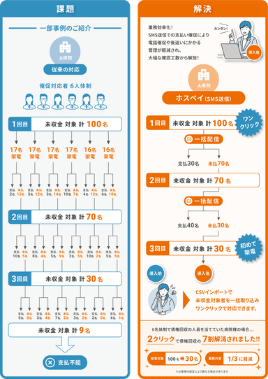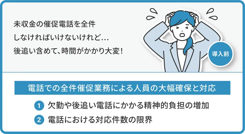 未収金を回収するために多数のスタッフを抱える必要があり、未収金だけではないコストも発生し、またスタッフは督促による業務負担や精神的負担を抱えていると聞いております。