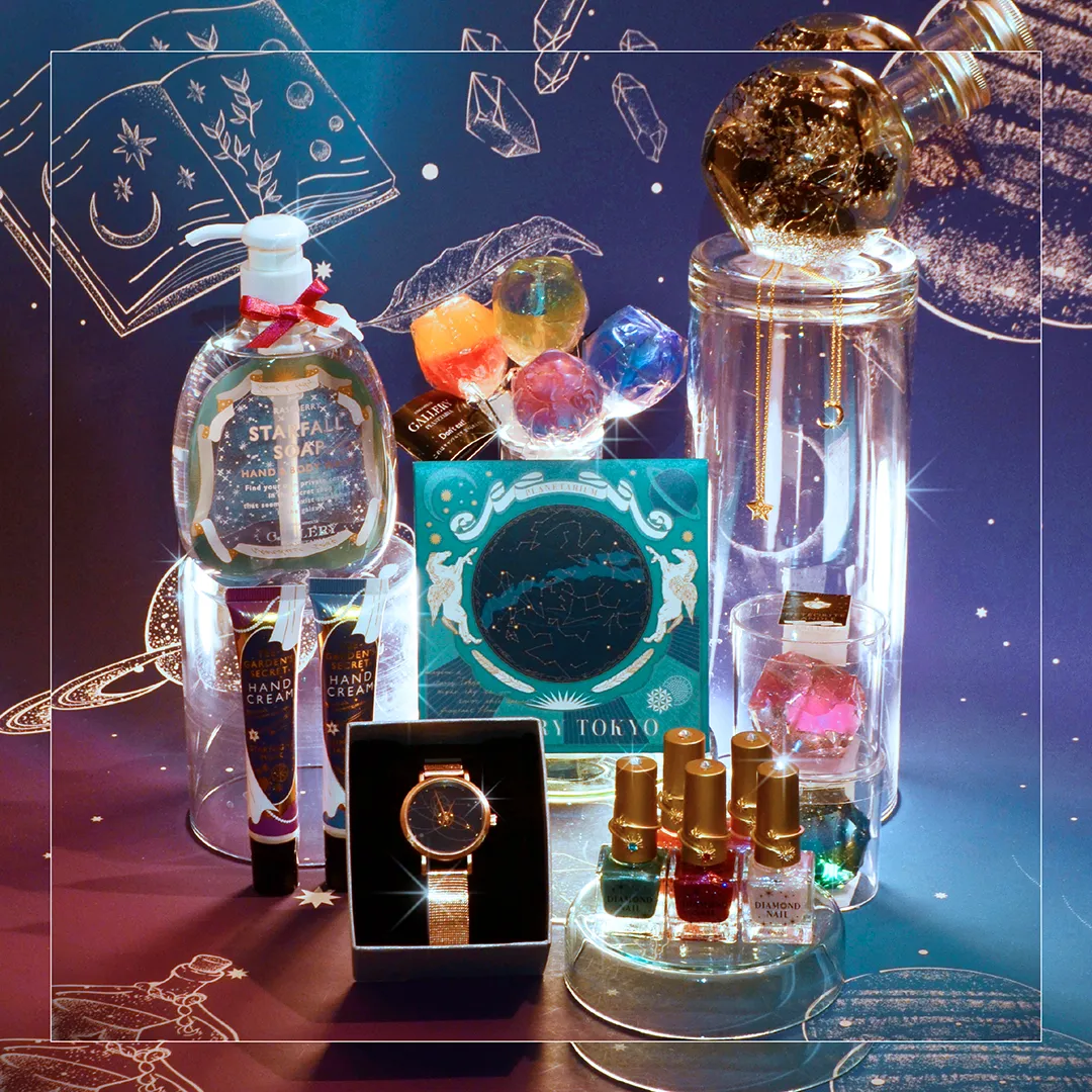 コニカミノルタプラネタリウム株式会社が運営する、”銀河のどこかにある秘密のお店”をコンセプトとしたギフトショップ。”天の川の香り”の紅茶や、隕石のキャンドル、星屑のきらめきを詰めたネイルカラーなど、美しく、宇宙でここだけのアイテムが並ぶ。