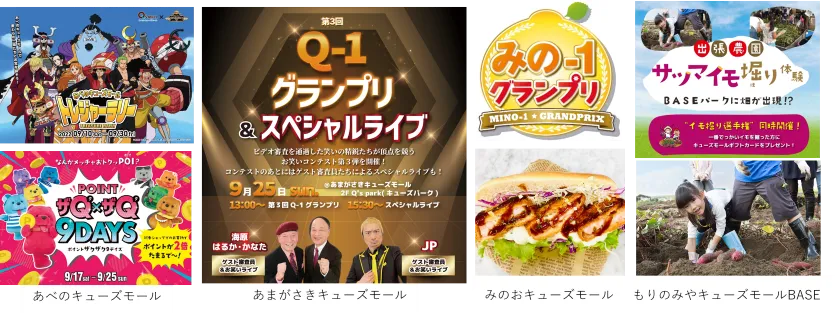 いずれも家族で楽しめるイベントですので、9月のおでかけはぜひキューズモールへお越しください。