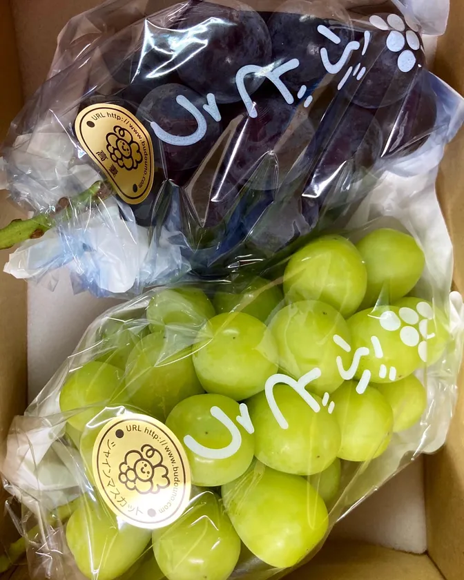 <シャインマスカット2房(1kg)と3~4房(2kg)>